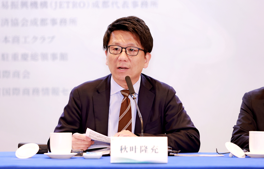 2025年4月28日、四川省成都市で、在重慶日本総領事館、ジェトロ成都代表処、日中経済協会成都事務所、成都日本商工クラブ、四川省CCPITの共催で、現地進出日系企業のビジネス環境改善を目的に、在四川省日系企業懇談会を開催しました。四川省政府機関、日系企業、中国企業の代表者ら約150名が出席されました。